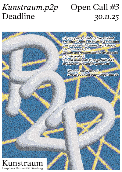 Proposal: 1 DIN-A4 page, sent to p2p.kunstraum@leuphana.de